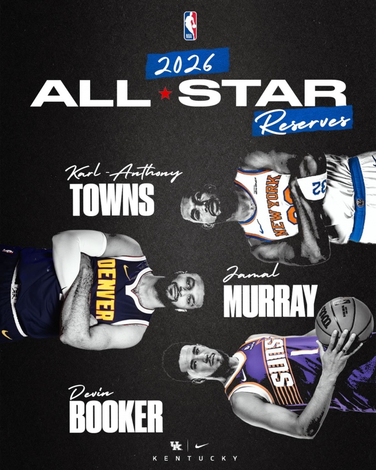 2月2日讯 今日,NBA官方公布2026年洛杉矶全明星替补阵容。肯塔基男篮官方社媒更新动态,祝贺三位校友贾马尔·穆雷、布克还有唐斯入选全明星替补阵容。加上此前入选首发的亚历山大还有马克西,肯塔基一共有五位校友入选了今年的全明星阵容。...